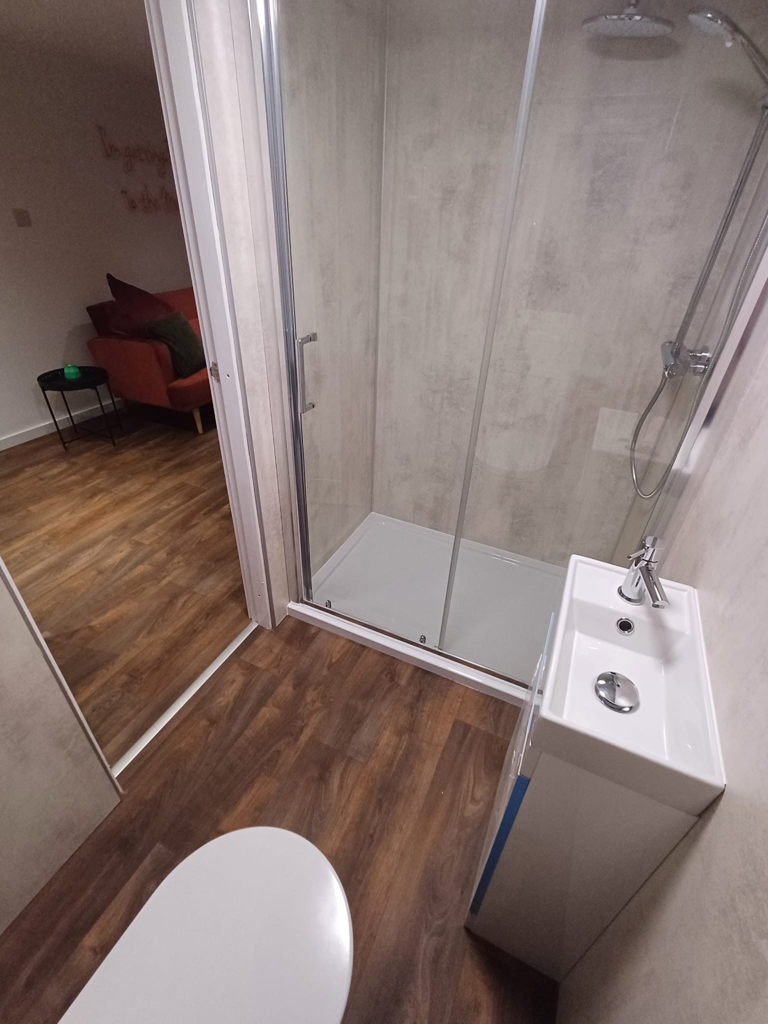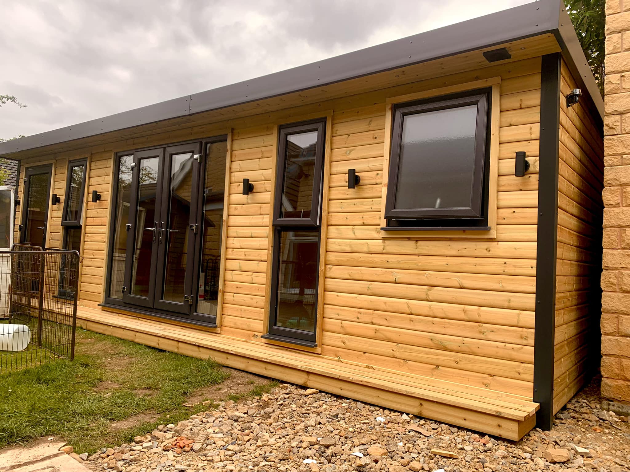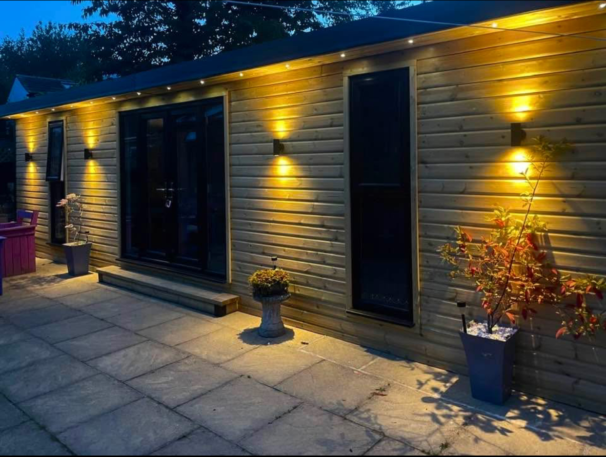 As you can see from the photos provided, we take a lot of pride in what we do. Contact us to discuss your requirements with us and get a quote on your new, bespoke timber cabin. Our cabins are fully insulated and plastered throughout. Complete with a rubber roof system, external recessed lights in the roof canopy and internal electrics to suit your requirements.